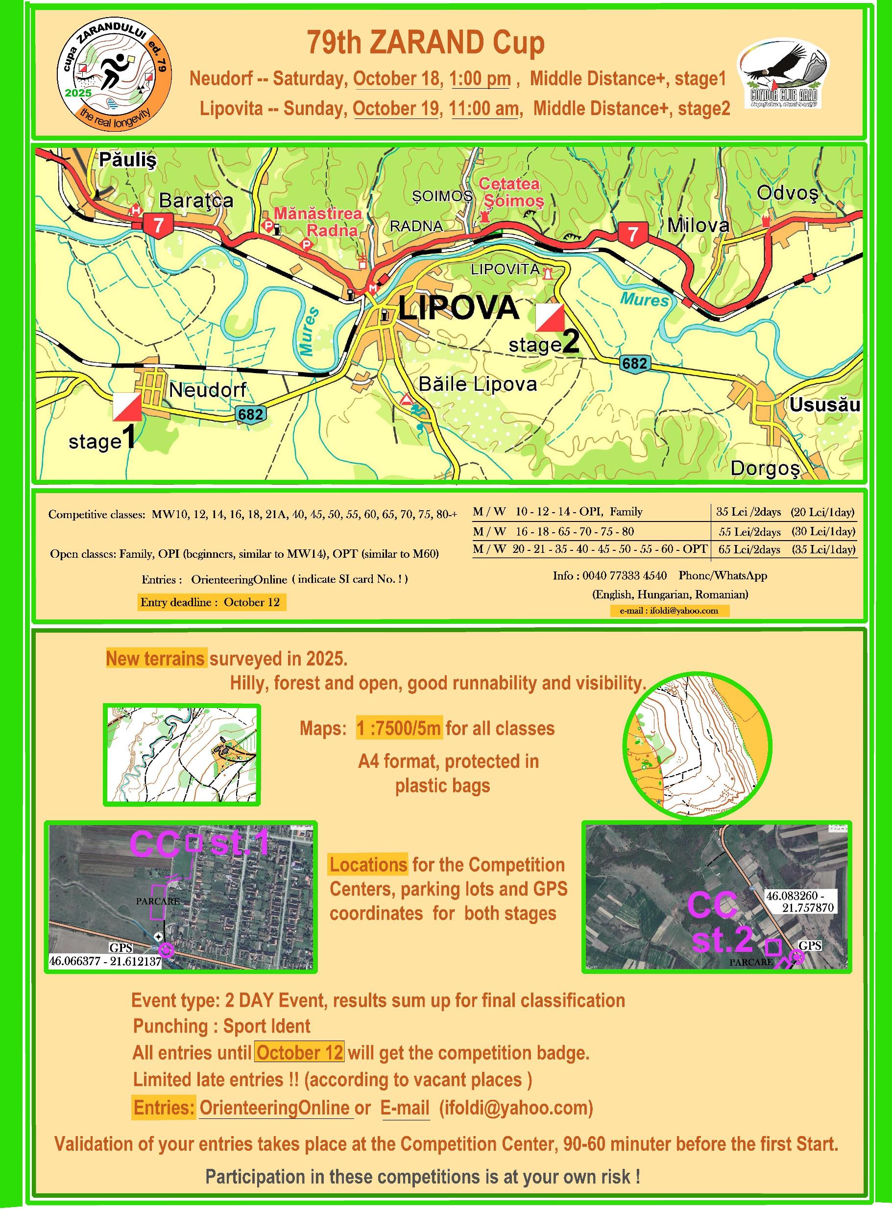 Cupa Zarandului (Lipova, Condor Club Arad, 18-19.10.2025) Buletin 1 (ROU) Buletin 1 (ENG) Online entries
